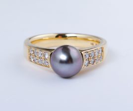 besetzt mit je einem Brillant von zus. ca. 0,20 ct., ca. 1,0 g, ein Rückstecker fehlt, dazu zwei Paar Ohrstecker, 585 und 14 K GG und WG, besetzt mit je einer boutonförmigen Zuchtperle, D = ca. 9,5 mm, bzw. mit je einem Diamant im 8/8-Schliff von zus. ca. 0,06 ct., ca. 5,9 g, Rückstecker fehlen (41450-14)