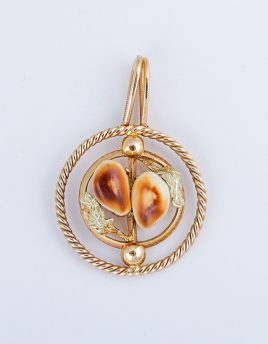 18 K GG, mit Emaille, brutto ca. 3,5 g, verbogen, dazu Gegenstück in Metall, mit angelöteter Öse (41480-18)