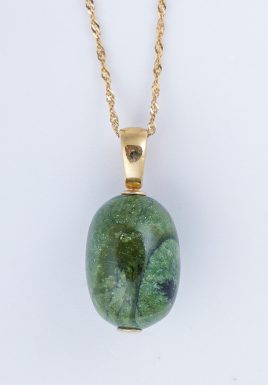 und Collierkette mit Anhänger, besetzt mit insg. drei oval-facettierten grünen Dekorsteinen, L = 45 cm, ca. 2,4 g (41450-15)